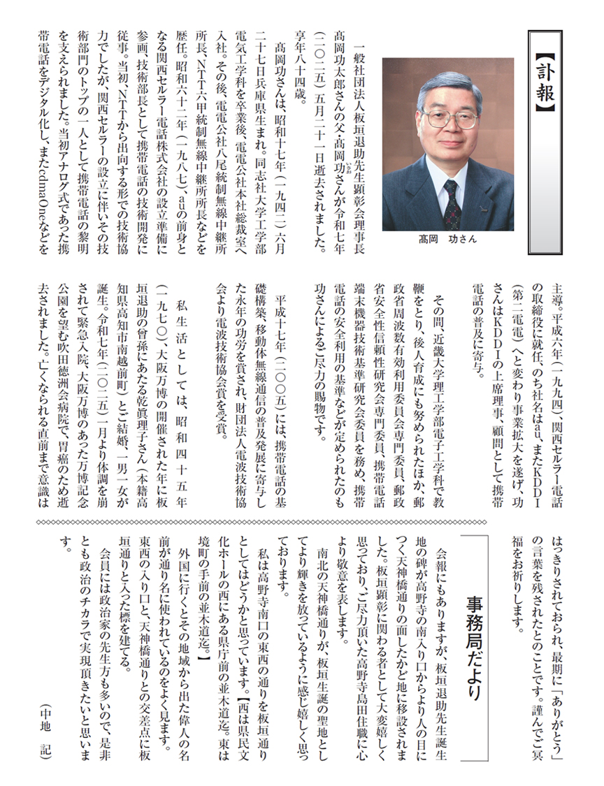 髙岡功さま 訃報記事(NPO法人板垣会会報より)