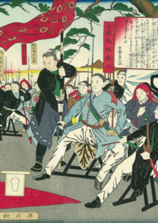 会津若松・戊辰戦争西軍墓地(旧官修墳墓)慰霊祭の後、会津藩降伏式の場所へ。 板垣は会津城(鶴ヶ城)の搦手に陣を取り、会津を降伏なさしめた後、松平容保公に武士の体面を保たせるため輿に乗って、堂々と城を退下することを許しました。 罪人のように「素衣面縛」して城を出るよう要求されるのではないかと恐れた会津藩士らは、この板垣退助の寛大な措置に感激し、その恩を忘れ…