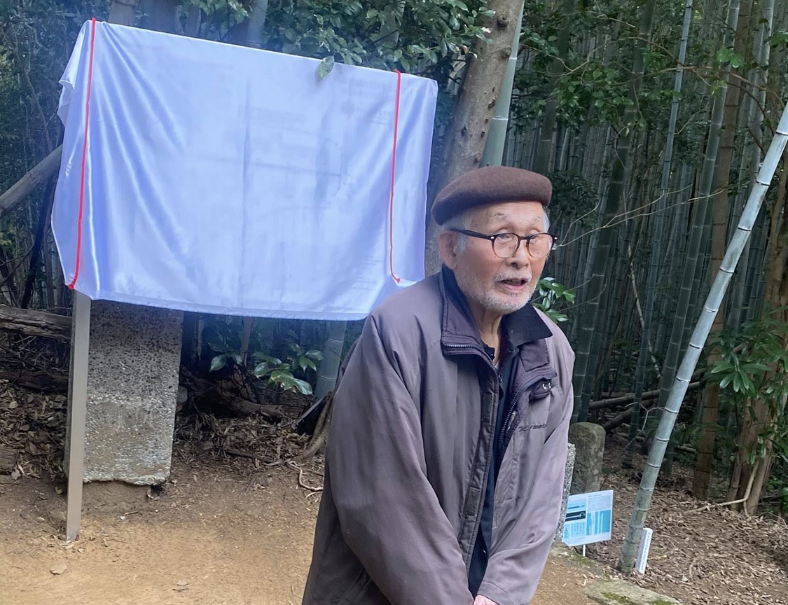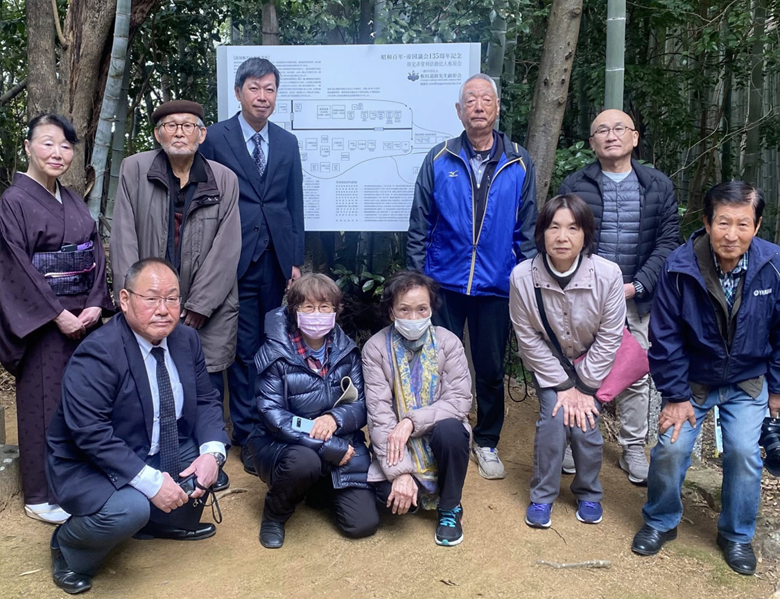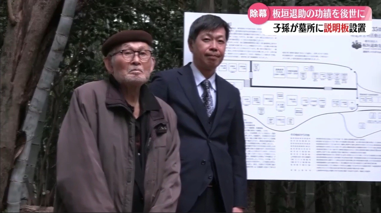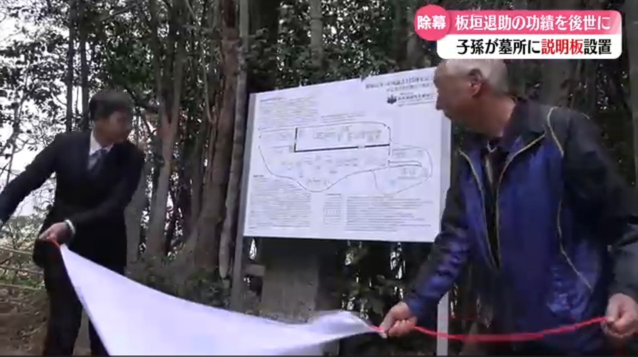 昭和百年・帝国議会135周年】を奉祝し、板垣山(山頂)【板垣家墓所案内板】建立の除幕式。