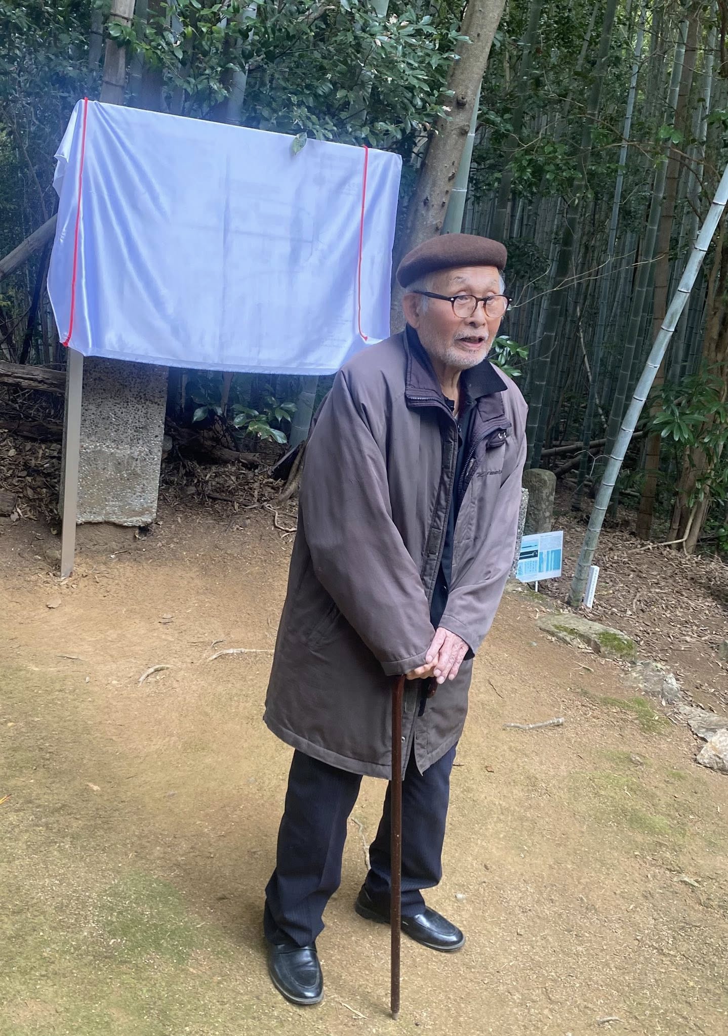 昭和百年・帝国議会135周年】を奉祝し、板垣山(山頂)【板垣家墓所案内板】建立の除幕式。